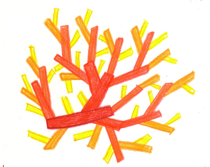 T92.1 starts with a single point that branches to a second. Each of these then branches again, to a total of four. In each successive generation, the number of points doubles, and the trick is to arrange them so that there is as much room for additional growth as possible.