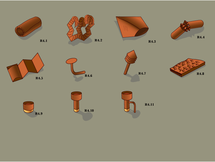 R numbers are assigned as new forms are defined. These forms are also assigned a place in the R-number cladograms. These cladograms resemble cladograms from Biology such as Templeton’s nested clades. Where Biology make a distinction based on speciation, R numbers are arranged based on divergence of steps taken in the process of making the pieces. In 2007 the category R0 had to be added to organize the initial shape of paper used to make the forms. Pieces assigned an R0 number don’t exist, they are the idea of the shape only.
