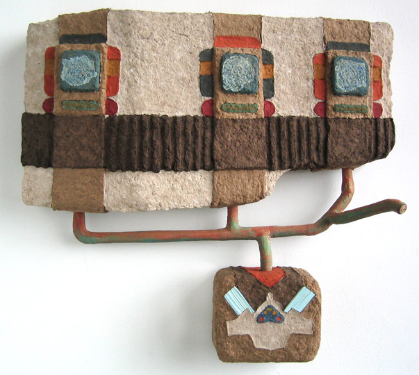 carboard, gouache, pigment, pulp, wood