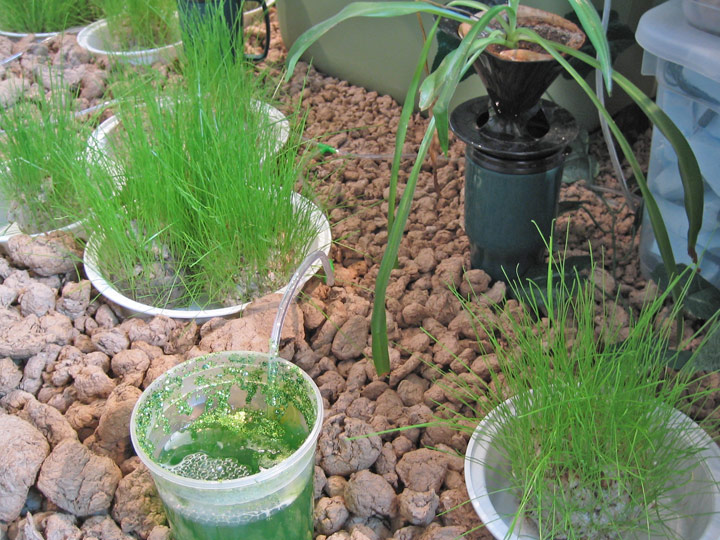 | | |  | | This is one of a series of recent works using cloned houseplants and bluegrass grown in ad-hoc hydroponic systems. These plants are interspersed among plastic plants, begging the question, ‘Which is more natural, a plant reproduced from a mechanical mold or from a genetic blueprint?’ | | T29.1 | 2005 | | water, pumps, organic and synthetic plants, paper pulp, video and electronic equipment, plastic bins | | 60" x 144" x 72" | | | | | | | | | | | | | |