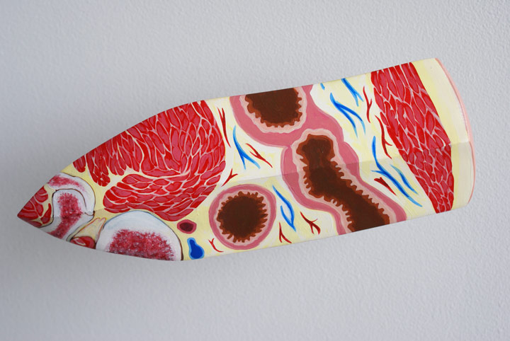 | | | | | As Peirous moved off, Thoas, an Aetolian, hit him, his spear striking him above the nipple. The bronze spear point bit into his lungs. Thoas moved in to close quarters, pulled the heavy spear out from his chest, drew his sharp sword, then drove it straight into the middle of his belly, destroying Peirous' life. Iliad, 4.527-531 translated by Ian Johnston | | 48.1.004 | 2007 | | acrylic on wood | | 11" x 4" x 1.5" | | | | | | | | | | | | | |