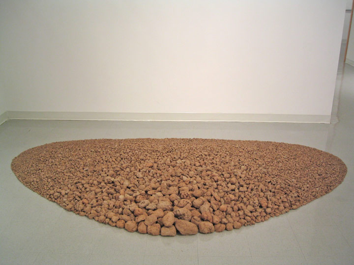 This piece is comprised of: two photographs and a floor sculpture: R5.2.3, T57.1, & T57.2 Ozymandius Principal - Titled after thepoem by Shelley, this principal addresses the changing perception of power heldwithin what we refer to as nature. 1. The romantic notion of the sublime stems from humility in the face of overwhelming entropy. 2. A classical fear of nature involves the localized or natural destruction of humanity, a nature which can destroy industry and identity. 3. A more recent fear stems from an awareness of the fragility of nature, of humanity's ability to bring it’s own end by destroying the biosphere, as well as the fear of a nature fully designed and homogenized, a nature of by-product. 4. There is also a contemporary phenomenon: the abandonment of Utopia, an apathetic reconciliation to the wasteland.