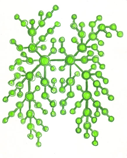 T92.1 starts with a single point that branches to a second. Each of these then branches again, to a total of four. In each successive generation, the number of points doubles, and the trick is to arrange them so that there is as much room for additional growth as possible.