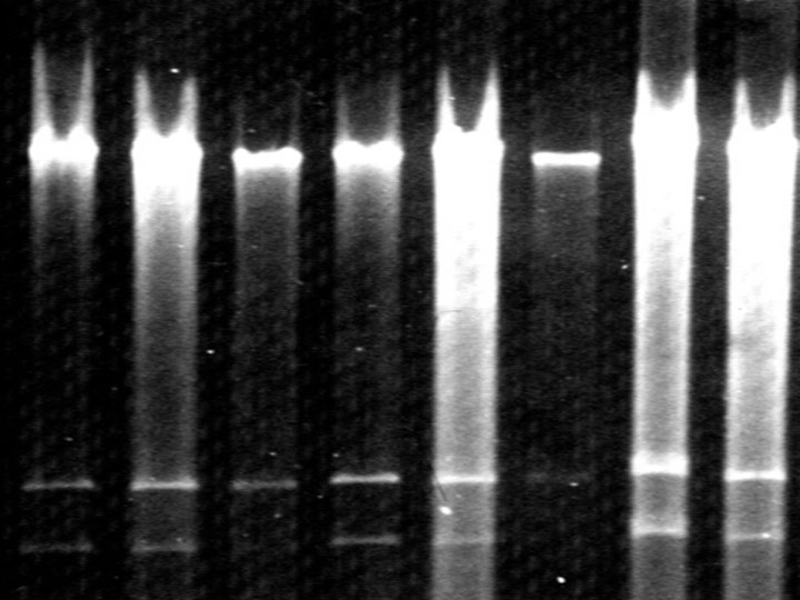 translation of DNA gel analysis into a sound file. Height determines pitch, and brightness volume.