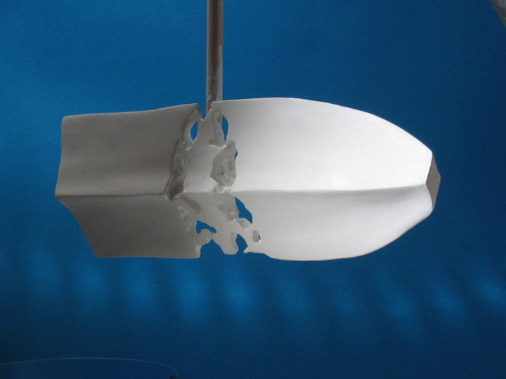 Unpainted Democoon hanging in the time-lapse booth.