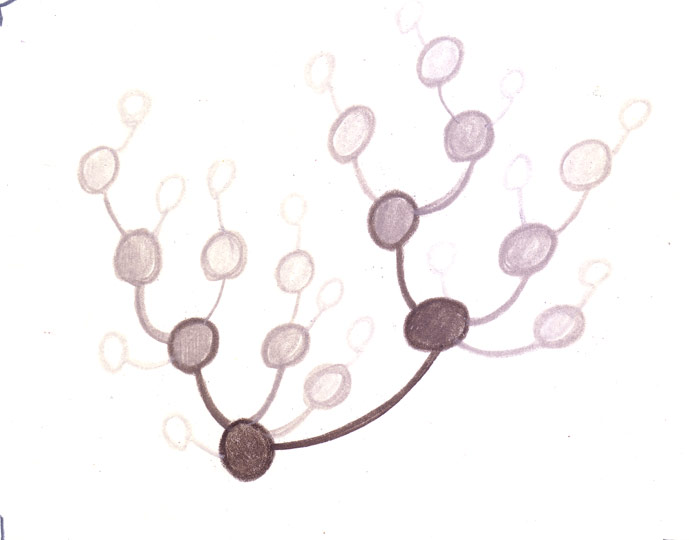T92.1 starts with a single point that branches to a second. Each of these then branches again, to a total of four. In each successive generation, the number of points doubles, and the trick is to arrange them so that there is as much room for additional growth as possible.